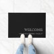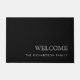 Ce mat noir simple et moderne dit "Bienvenue" dans un texte gris clair classique et élégant et a de la place pour votre nom de famille ou nom d'entreprise.