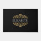 Un élégant mat de porte noir et or fleuri. Ajoutez votre nom entre la floraison dorée sur le devant. Conçu pour vous par Blackberry Boulevard.