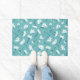 Paillasson Élégant motif floral - Botanique Turquoise et blan