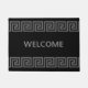 Elégant Motif grec Silver Grey sur tapis de porte de bienvenue noir. Le texte de bienvenue peut être personnalisé.