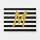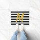 Paillasson Élégant noir et blanc rayures or Monogramme