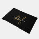 Élégant Noir Noir Script Monogramme mat Doormat. Un élégant monogramme en or combiné à une police blanche de san-serif, donne un aspect contemporain.