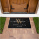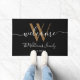 Paillasson Élégant Noir Monogramme Nom Script Newlyweds