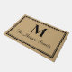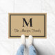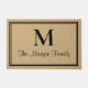 Élégant design moderne monogramme personnalisé mat dans le classique tan et noir Double Bordures. Vous pouvez personnaliser cette simple frise moderne en tan et noir avec le nom de famille en script et une initiale en monogramme de style serif.
