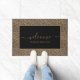 Elégant mat de bienvenue avec un script or sur un arrière - plan de chevron d'or noir. Personnalisez avec votre nom de famille ou votre texte.