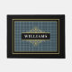 Bienvenue dans votre maison avec ce tapis de porte personnalisable qui dispose d'un motif plaid classique noir et gris vitre surligné d'un élégant emblème d'or. Personnalisez-le avec votre nom de famille pour ajouter une touche de sophistication et de masculinité à votre porte. Ce design intemporel fera un grand cadeau pour vous, votre famille, vos amis ou les nouveaux propriétaires. Modifiez le nom pour répondre à vos besoins et créez une entrée chaleureuse et accueillante.