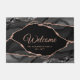 Ajoutez votre touche spéciale à ce design simple et élégant, avec les mots Welcome, votre nom de famille ou votre phrase, et date ou adresse d'origine en or rose avec parties scintillant en or noir, blanc et rose sur un arrière - plan noir.