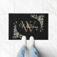 Tapis de sol personnalisé élégant avec monogramme floral aquarelle verdure avec un monogramme or initial avec votre nom écrit dans un script blanc moderne sur un fond noir chic. Conçu par Thisisnotme