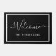 Bienvenue famille et amis à votre porte avec cet élégant tapis noir.
