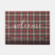 Élégante porte de nom de famille personnalisée avec votre nom de famille avec votre date établie dans un texte blanc classique sur un arrière - plan plaid avec le message "bienvenue" Conçu par Thisisnotme©