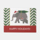 Ces éléphants à la mode et mignons de Noël, un parent et petit éléphant de bébé, retournent à la maison avec leur arbre de Noël parfait. Tous les deux sont totalement dans l'esprit de vacances avec assortir des casquettes de Père Noël ! Le reste des caractéristiques de conception une conception verte de chevron, et un rectangle rouge au fond. Les lignes minces du décor de feuille d'or rayent les bords. (Notez svp l'article ne contiendra pas la feuille d'or réelle.) Le fond de la conception indique "bonnes fêtes", mais vous pouvez facilement changer le message ou le personnaliser en utilisant le modèle.