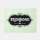 Trombone en texte décoratif contre un emblème noir est un design cadeau unique pour les musiciens en laiton bas, les professeurs de musique et les étudiants en concert, jazz et groupe de marche.