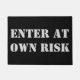 Portes amicales ? Non. Nous voulons des portes cyniques chez nous... Doormat est disponible dans un choix de couleurs et comporte le slogan "Enter at own risk", De la ligne "Cynical Doormats" par Mindgoop