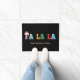 Coloré, festif, typographique "FA LA" chapeau santa, noir, tapis de porte de vacances. Customisez avec votre signature familiale.