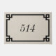 Porte de ferme moderne personnalisée avec votre numéro d'adresse ou autre texte personnalisé dans une frontière grecque chic. Veuillez noter que la texture arrière - plan de toile de burlap fait partie du design imprimé et que le produit n'est pas fait de matériel de burlap réel. Cliquez sur le bouton Customiser pour ajouter votre propre texte et créer votre propre design unique d'un genre !