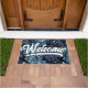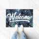 Paillasson Feuilles Tropical Blue Black Palm Bienvenue