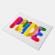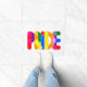 Cette oeuvre d'art colorée présente la Pride, décorée en arc-en-ciel.