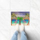 Flamants de Noël et palmiers porte côtière Décor de maison de vacances avec mon art. Tapis de porte pour usage intérieur ou extérieur. Amusants flamants roses de la côte et décorés palmiers tropicaux Design de vacances. Disponible en plusieurs tailles.