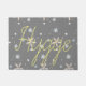 Texte Whimsical "Hygge" en jaune pâle avec arrière - plan de fleurs blanches, bleues et violettes pâles sur arrière - plan gris.