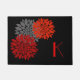 Tapis noir étonnant, avec de grandes fleurs stylisées gris clair, rouge et orange. Un monogramme rouge à une grande lettre, sur le côté droit, est prêt à personnaliser pour vous-même ou comme une idée de cadeau. Quelle belle façon d'accueillir les invités dans votre maison.