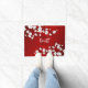Paillasson Floral Blanc Cerisier Fleur Rouge Monogramme Ajout