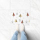 Un design d'art abstrait inspiré par un moderniste du XXe siècle, avec des arbres d'hiver modernes du milieu du siècle dans une forêt, avec des flocons de neige minimalistes simples.