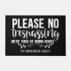 Ce mat humoristique présente une image textuelle "Please No Trespintrusion We are Fatired of Hide Bodies", et personnalisée avec votre nom de famille sur un arrière - plan noir.