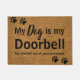 Drôle tapis de porte avec une fausse texture de coco, empreintes de pattes, et le texte "mon chien est ma cloche de porte, son m'a alerté de votre présence".