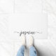 Tapis de sol personnalisé Féminin Minimaliste Simple Propre Blanc Monogramme Nom Signature Script Personnalisé. Ce design présentant votre prénom dans un joli style de lettre manuscrite avec une typographie de signature à queue en arabesque (ou calligraphie) sur fond blanc. Cadeau féminin élégant pour une crémaillère, également pour un anniversaire, un anniversaire de mariage, une douche de mariée, un mariage, une soirée bachelorette et C'est pour la fille qui aime les choses minimalistes propres.