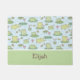 Un mignon motif de grenouilles, libellules, lily pad, cattail et d'autres plantes, éléments trouvés dans un étang. Personnalisez avec le nom de l'enfant pour faire un adorable tapis de porte personnalisé pour la chambre pour le petit.