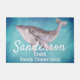 Matelas personnalisé Aquarelle marine Baleine grise sur un Arrière - plan bleu turquoise côtier. Personnalisé avec le nom de famille et l'adresse.