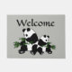 Panda Mama est assise en train de manger du bambou pendant que le bébé fait comme le bébé panda voit