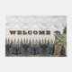 Peut PERSONNALISER ce tapis de porte d'ours! Artiste : Harry Bullock Webster - Bear on Cliff. Aquarelle. vers 1874-1880. L'image est une peinture impressionniste d'un ours noir debout sur une falaise surplombant une forêt verte foncée avec des sommets enneigés s'élevant au loin. Une partie de l'image est répétée à travers le tapis de porte pour remplir l'espace horizontal.