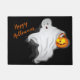 Le mat de porte d'Halloween est montré en noir avec une empreinte fantôme festive. Customisez ce tapis ou achetez tel quel. Image stock