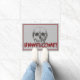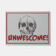 Faites attention aux invités indésirables ou amusez-vous cet Halloween avec ce tapis de porte éffrayant. Comprend un crâne vintage noir avec les mots "indésirable" dans la typographie rouge sang ghoulish sur un arrière - plan gris clair, entouré d'une bordure rouge foncé.