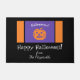 Ce tapis de portes Halloween est mignon, amusant et un peu éffrayant! Arrière - plan noir avec violet, orange et blanc avec un citrouille orange et le mot Halloween dans une police amusante. Dans deux polices (une police amusante et un script) sont les mots "Happy Halloween de ()!" Classique, classe et amusant !