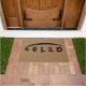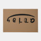 un ambigramme du mot anglais "hello" et le mot espagnol "adios" pour un tapis de portes qui se lit de part et d'autre. un tapis de portes à deux sens.