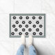 Ce joli tapis de porte en faux carreaux noir et blanc avec une bordure bleue menthe est parfait pour n'importe quelle maison. Ses lignes épurées, ses couleurs simples et sa motif vintage sont intemporelles et polyvalentes. Conçu sur un tapis en caoutchouc qui est durable et facile à nettoyer. Parfait pour les maisons côtières et contemporaines.