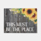 Ce doit être le tapis de porte de tournesol Place avec un arrière - plan motif en bois foncé. Bienvenue à la maison douce.