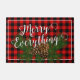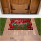 Tapis extérieur classique avec un motif de bûcherons de Buffalo rouge et noir, et saisonnière de cônes de pin et d'aiguilles, avec un plaisir Joyeux Tout voeux de vacances que vous pouvez customiser ou personnaliser à votre goût. Ce design élégant de la saison de décembre a été créé pour le designer extérieur de la maison, ou pour les amoureux de style cottage de campagne qui aiment les thèmes hiver et Noël. Produits originaux et modernes pour ceux qui aiment décorer la véranda, le patio ou le coin salon jardin de leur maison, cabine en rondins, cottage, lac ou maison de vacances en rivière.