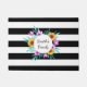 Belle natte à l'aquarelle fleurie sur arrière - plan rayé noir & blanc. Customisez le texte en choisissant parmi de nombreuses polices merveilleuses.