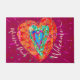 Ce tapis de porte de Saint-Valentin présente un coeur de style hippie rétro, rouge, rose et turquoise, sur un arrière - plan rose. D'un côté, il a le mot "Bienvenue" et de l'autre personnalisent avec les noms d'un couple dans un script moderne. Conçu par l'artiste mondialement connu Tim Coffey.