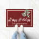 Bienvenue famille et amis avec ce tapis de portes Joyeux Fêtes. Il est décoré d'un faux-pied aquarelle sur un arrière - plan bordeaux de marron. Facile à personnaliser. Utilisez l'outil de conception pour modifier la taille, le style ou la couleur du texte. Lorsque nous créons nos oeuvres, vous ne trouverez pas ces images exactes d'autres créateurs. Aquarelle originale © Michele Davies.