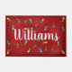 Une série colorée de lumières de Noël sur rouge avec nom de famille. Le nom peut être modifié.