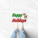 Tapis de portes avec des vacances heureuses en texte vert et rouge 3D et un renne. Disponible en plusieurs tailles.