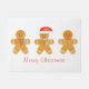 Belle illustration de trois hommes en pain d'épices vêtus d'une tenue de vacances. Chapeau de Père Noël, écharpes d'hiver et boutons colorés mignons apportent la joie de vacances à ce design. Les hommes en pain d'épice sont un incontournable de la saison de Noël et ce design est parfait pour apporter de la joie cette saison!
