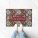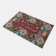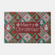 Original tricoté Joyeux tapis de portes Noël. Rhombus de Noël en faux tricot rouge, vert, blanc et turquoise motif avec arbres de Noël, flocons de neige, coeurs, bonhomme de neige et ornement du chevron du zigzag.