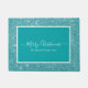 Élégant Matelas de Noël Joyeux avec un script blanc sur un arrière - plan parties scintillant turquoise. Personnalisez avec votre nom de famille ou votre texte.