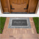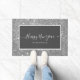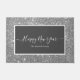 Happy New Year Doormat avec un script blanc sur un arrière - plan gris agrémenté d'une toile de fond en parties scintillant argent. Personnalisez avec votre nom de famille ou votre texte.