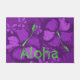Couleur violet et vert citron. Le message d'Aloha accueille vos visiteurs dans votre propre paradis tropical. Des fleurs tropicales d'hibiscus dessinées avec des pastels sur la lave organique ont créé cette vintage impression tropicale inspirée. Ce design se décline en plusieurs couleurs. Vous pouvez customiser le message.